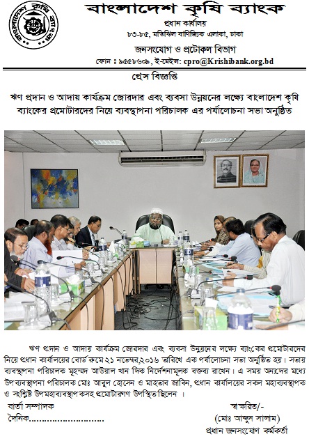 bkb press release on review meet with Promoters - Bangladesh Krishi Bank